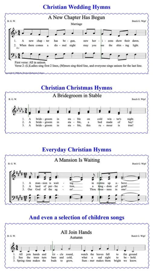 Sing along to the beautiful Hutterite hymns composed by Butch G. Wipf.