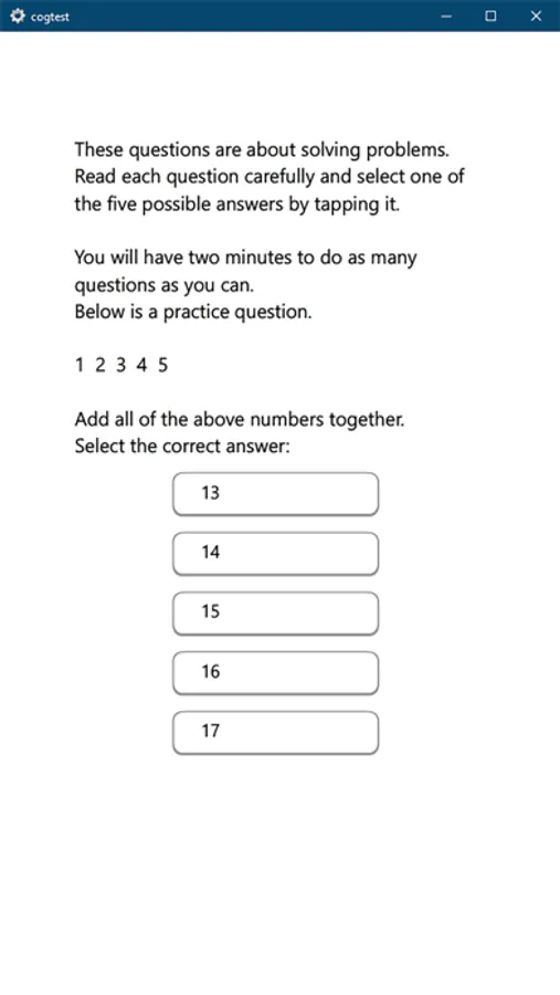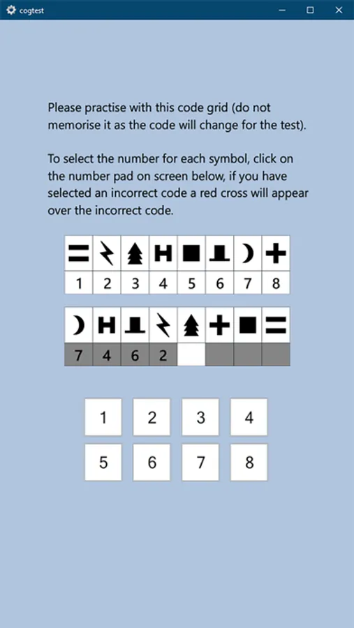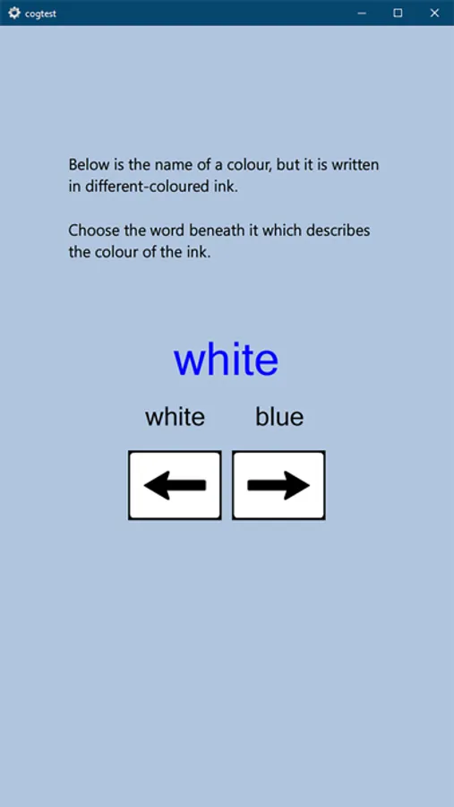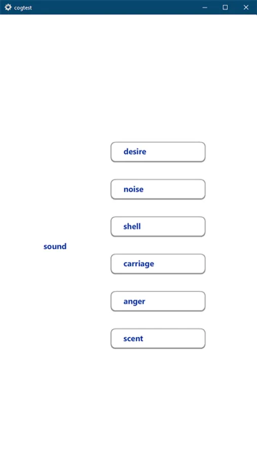 Reaction test, Quiz, Working Memory, Pairing, Stroop-Box, Stroop-Ink, Matrices, Trails, Vocabulary, Symbols
