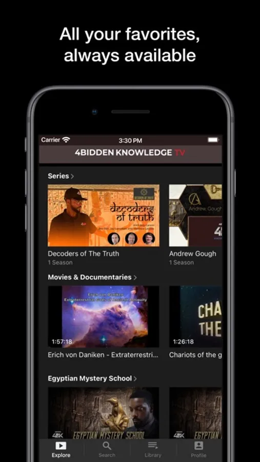 To access all features and content you can subscribe to 4biddenknowledge TV on a monthly or yearly basis with an auto-renewing subscription right inside the app.* Pricing can vary by region and will be confirmed before purchase in the app. In app subscriptions will automatically renew at the end of their cycle.