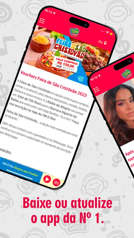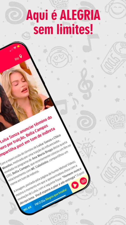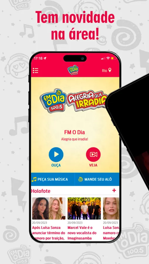 O jeito mais fácil para ouvir a melhor programação, ver a Rádio AO VIVO, curtir e avaliar os maiores sucessos, os últimos lançamentos, pedir o seu "ALÔ" (pode ser em texto, áudio e vídeo) e tudo o que faz da FM O Dia a Rádio preferida dos ouvintes.