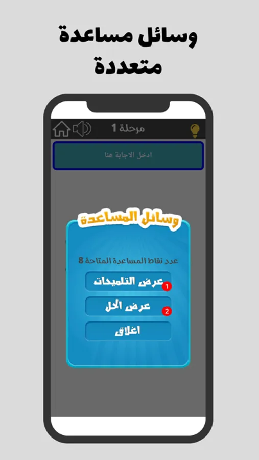 توجد وسائل مساعدة متعددة منها اظهار تلميحات تقودك الي الاجابة الصحيحة او أعطاءك الاجابة نفسها