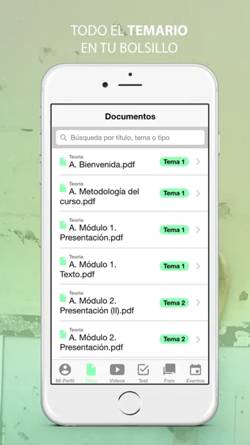 Con nuestra app podrás acceder a todos los contenidos de nuestros cursos (documentos, vídeos y clases en directo) en cualquier momento y desde cualquier parte del mundo.