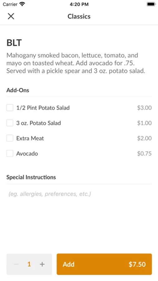 With the Mahogany Smoked Meats mobile app, ordering food has never been easier. Whether you're looking for a quick snack or a full meal, we've got you covered. Just browse our easy-to-use menu, customize it how you'd like, place your order using our secure payment system, and sit back! A push notification will alert you when your order will be ready.