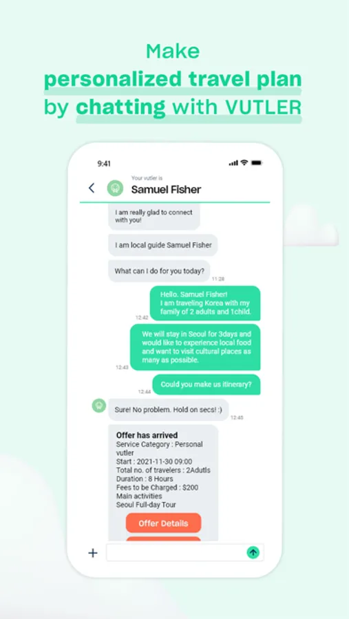 A traveler and a local travel guide are connected to plan a trip by 1:1 chat, go on a personalized tour, or get a delivery service, meeting every traveler's needs. Prices for Meet Locals may vary by travel guides for their customized services.