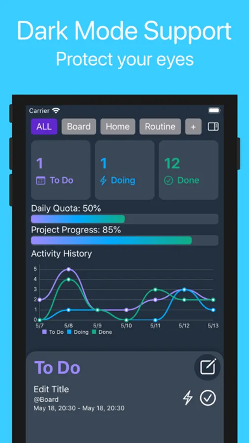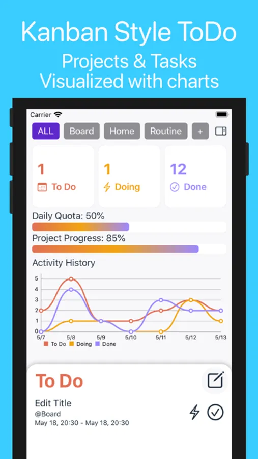 - Tasks have Todo, Doing, Done status so that you can organize them like Kanban.