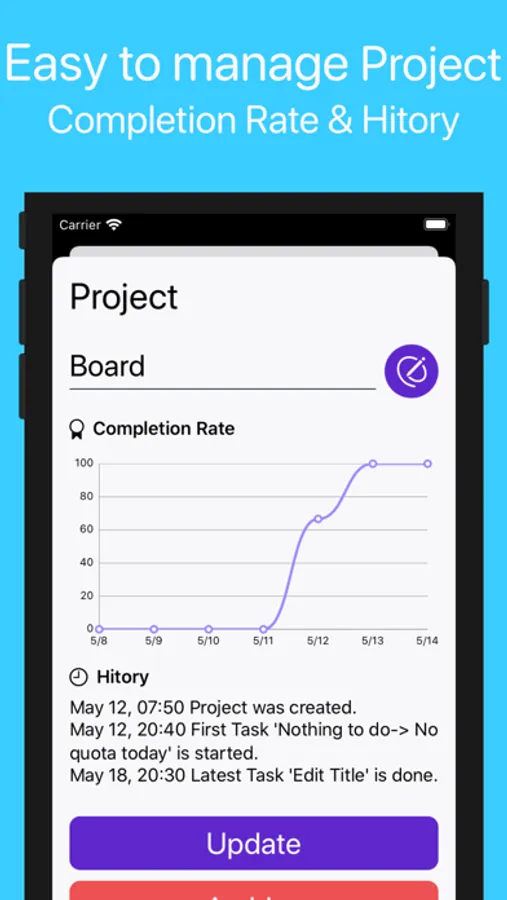- Daily quota (which is deadline today) progress rate, Projects progress rate are visualized with bar charts.