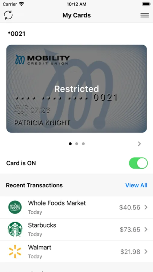 Set spending limits to decline transactions above your thresholds. Monitor activity by category such as gas stations and restaurants, and by type: in-store purchases, e-commerce transactions and ATM transactions.