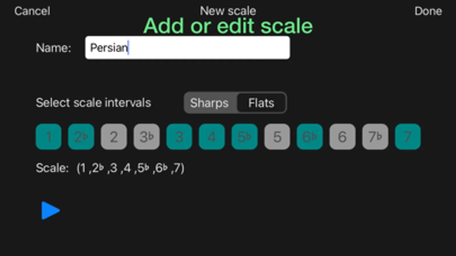 ◦ Hear audio previews of your chosen scale and tuning.