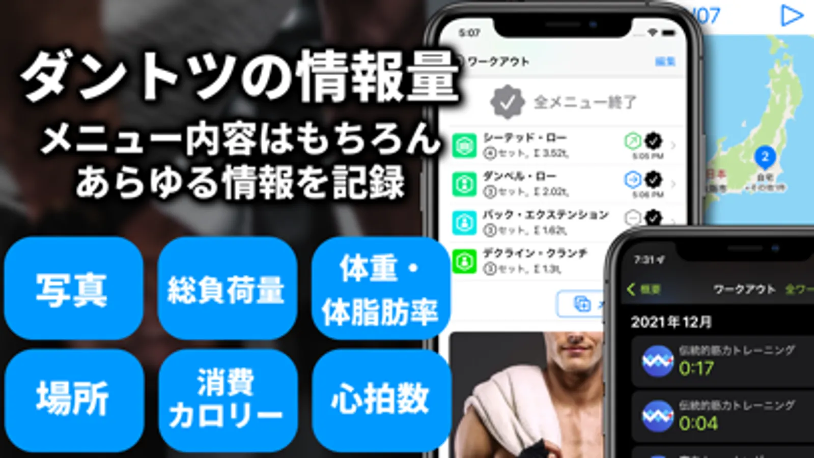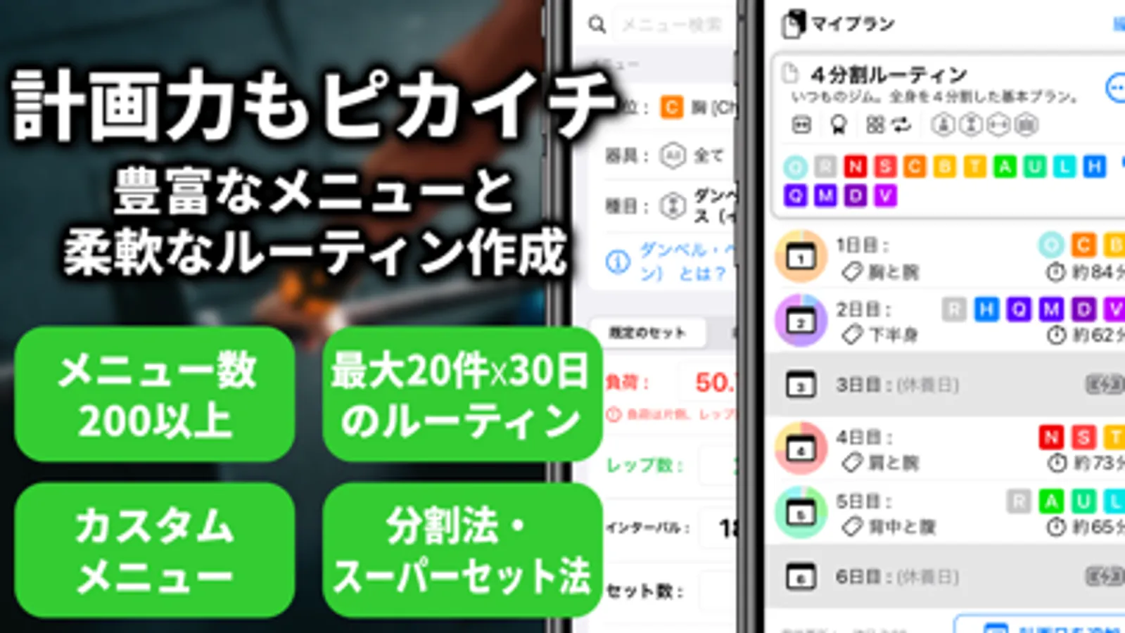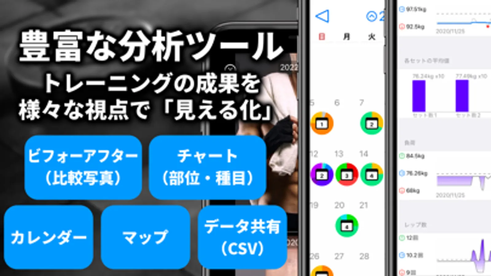 ・Logs are summarized by parts or exercise size and displayed as a chart