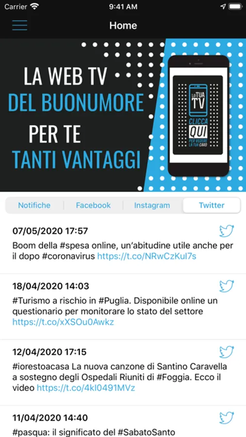 Nella nostra app potrai anche visualizzare quello che pubblichiamo sui social.