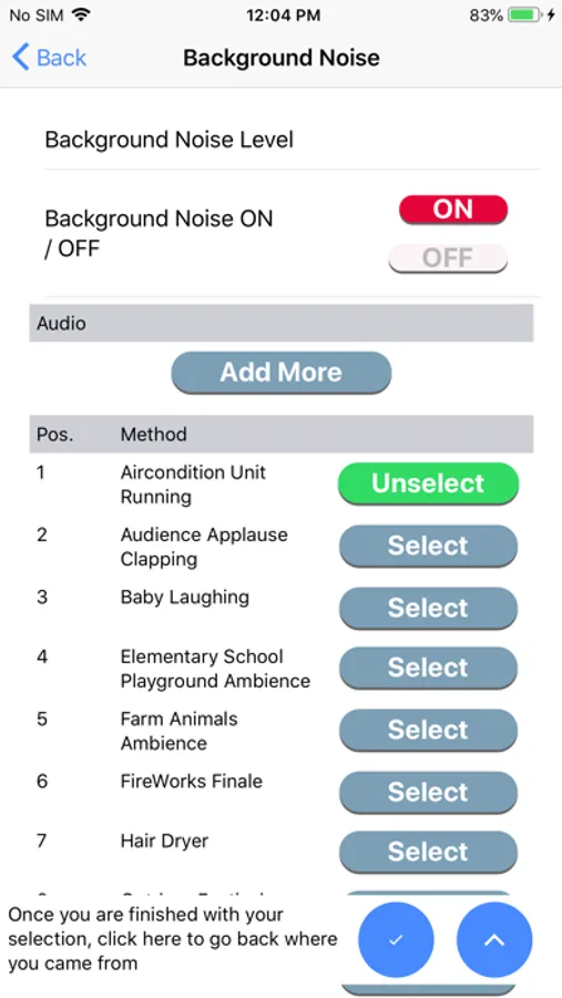 Only at the CHALLENGING and DIFFICULT levels,the listener can choose a BACKGROUND NOISE type and select the BACKGROUND NOISE LEVEL.