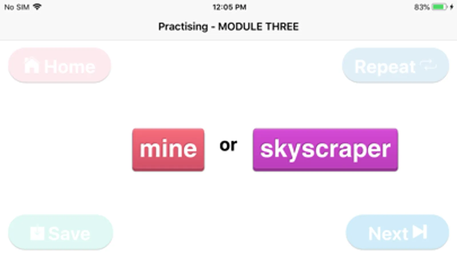 Listen carefully and click on the word you heard before moving on to the next pair of words.Continue until you have finished the module and request the generation of a summary report (paid feature) before tackling the next module.