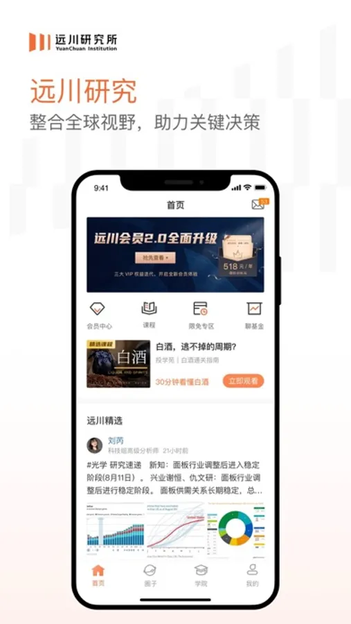 “远川研究所”与“远川投学苑”的服务互为补充,相辅相成,能够为用户呈现完整的基本面真相,辅助用户作出正确的决策。而新版远川研究App整合了二者的全部服务,同时还增加了圈子功能,方便精华资料的不断沉淀,同时大幅提升了互动效率。