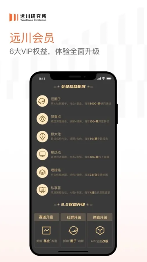 【研究服务】即“远川研究所”黄金会员,是一种动态跟踪的投研服务,把专业的研究用通俗易读的方式呈现给用户,拉近用户跟投资圈的距离。