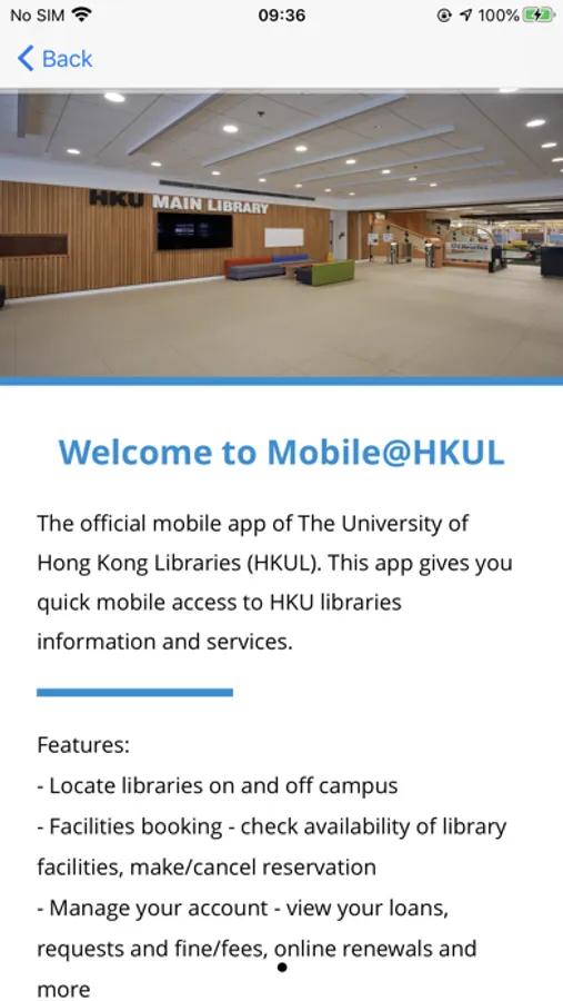 Welcome to the official mobile app of The University of Hong Kong Libraries (HKUL). This app gives you quick mobile access to HKU libraries information and services.
