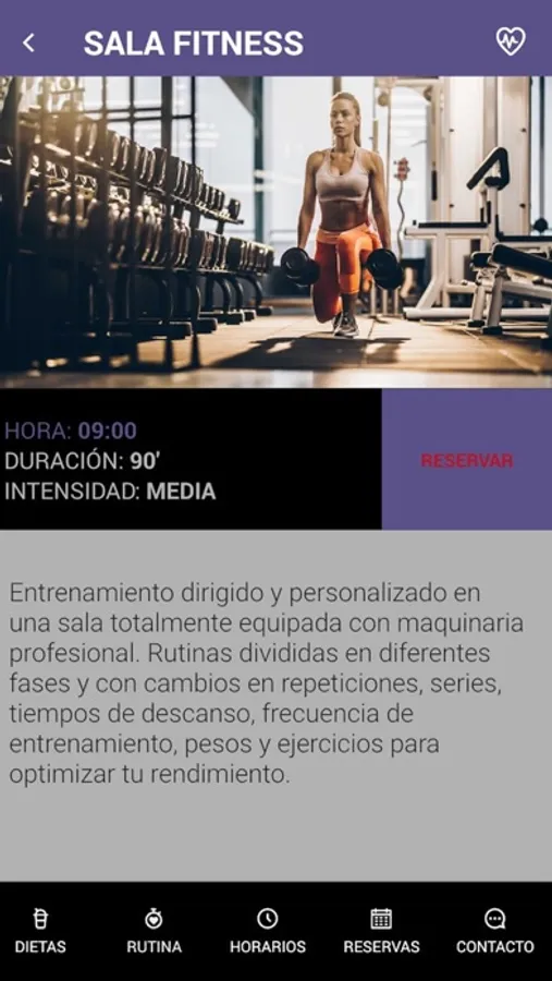 Nuestra APP cuenta con un novedoso sistema de reserva de clases integrado desde el que podrás reservar plaza en tu actividad favorita, con solo pulsar un botón sabrás si hay plaza disponible o entras en lista de espera. Olvídate de tener que llamar por teléfono, de apuntarte en listas, de coger tarjetas, de hacer colas en la puerta de la sala... queremos dejar atrás todo eso y este es el momento.