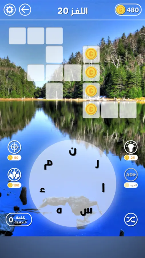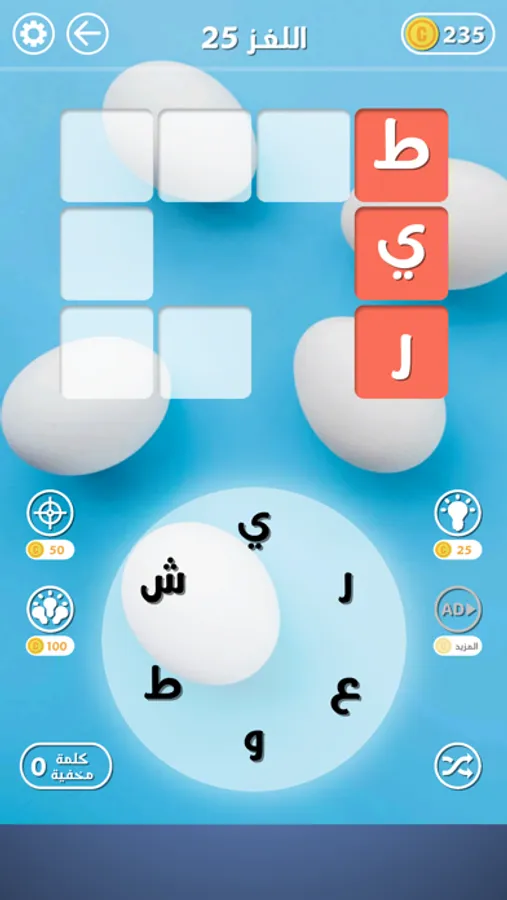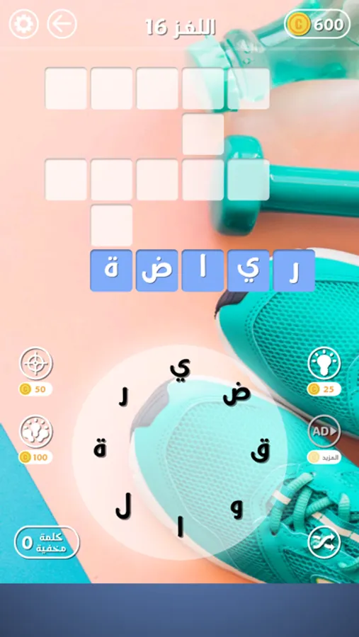 7- ممكن ان تستعمل زر التلميحات لتكشف عن حرف في أي كلمة، لكنك ستفقد بعض القطع النقدية.