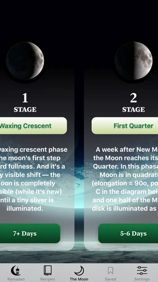 This app includes a wealth of information about Ramadan and its delicious cuisine as well as the stages of the Moon