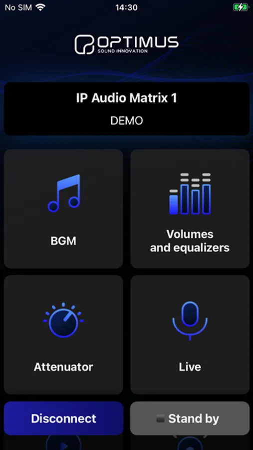 Optimus app for easy control  of your Public Address and Voice Alarm System. It allows the Music Chanel selection and Volume/Eqz management for your installation from your iOS device. It also permits to trigger Pre-recorded messages as well as send Live messages to the desired zones of your building.