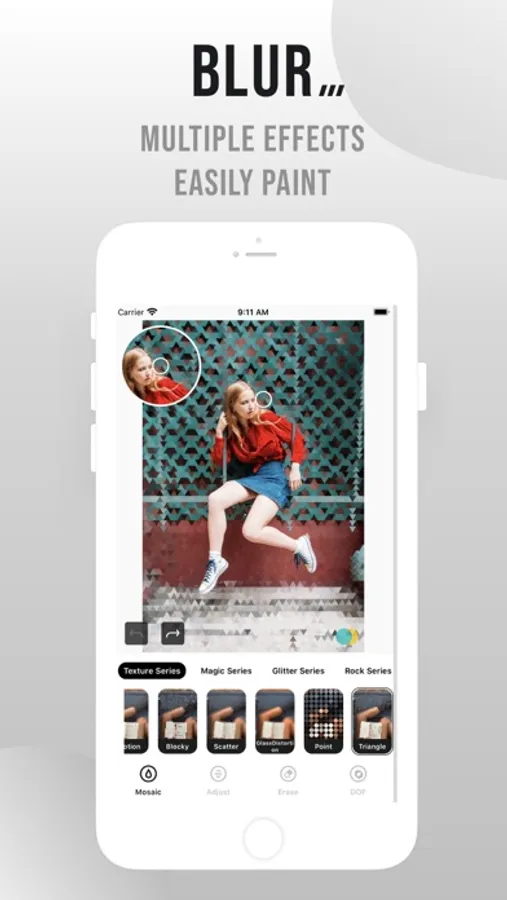 * Blur: Provides a simulated depth of field function to quickly focus and make the focus of the photo more prominent