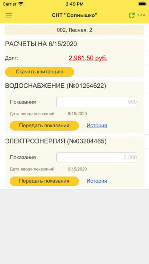 Приложение поможет председателям оперативно передавать необходимую информацию о начисленных взносах, квитанции об оплате владельцам участков, а владельцы участков в любой момент без необходимости личного похода к председателю или бухгалтеру передать показания счетчиков, получить квитанции и отслеживать начисления.