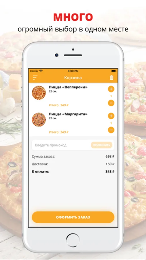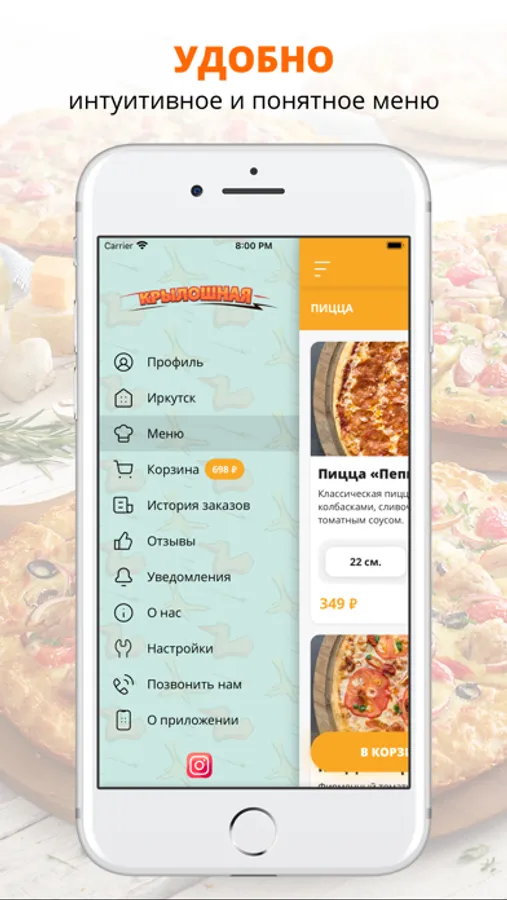 Скачивайте наше приложение и заказывайте вкусную еду с доставкой домой или в офис!