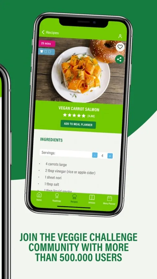 Receive daily tips, rewards, hundreds of recipes, free coaching, and access to a vibrant and supportive community. The app provides daily challenges, helps you make weekly meal plans, calculates your impact, stores your favorite recipes, and brings cooking instructions straight to your kitchen. 100% free.