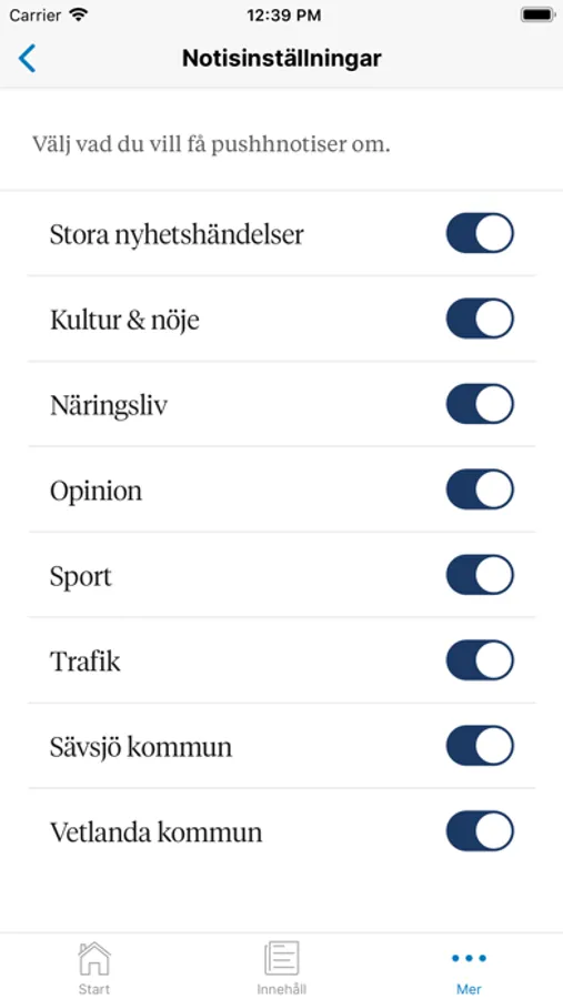• Prenumerera på nyhetsnotiser om ditt favoritlag eller ämnen som intresserar dig – så hänger du alltid med.