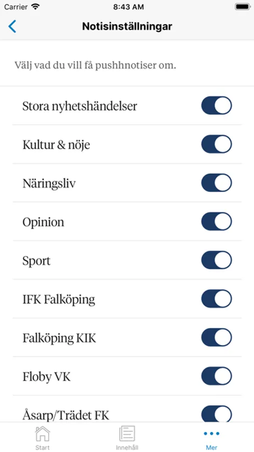 • Prenumerera på nyhetsnotiser om ditt favoritlag eller ämnen som intresserar dig – så hänger du alltid med.