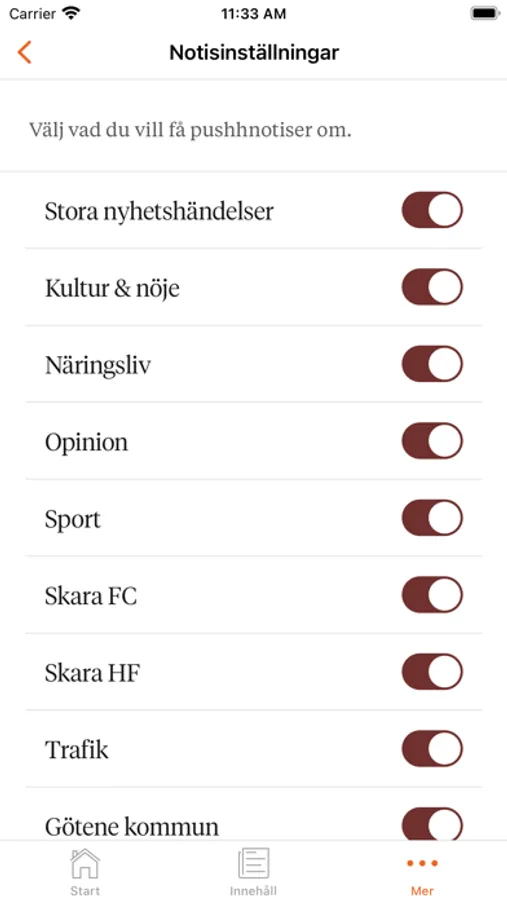 • Prenumerera på nyhetsnotiser om ditt favoritlag eller ämnen som intresserar dig – så hänger du alltid med.