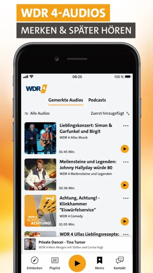 Passen Sie WDR 4 in der App an Ihre Bedürfnisse an. Personalisieren Sie die Wetter- und Verkehrsinfos, stellen Sie sich Ihre Inhalte zusammen und abonnieren Sie Ihre Lieblings-Audios, -Podcasts und -Sendungen.