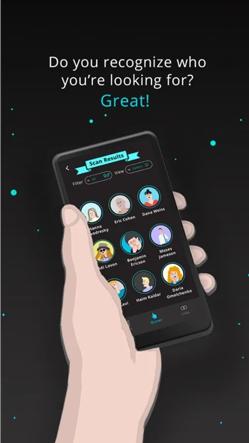 Met someone who isn’t on MiZeMI yet? No problem! Let them scan your profile’s QR code, or ask them to place their smartphone on your buzzer (an NFC sticker, available for purchase on https://mizemi.app( Your profile will immediately appear on their screen, complete with the links you’ve opted to share. Others don't need an app or a buzzer for it to work.