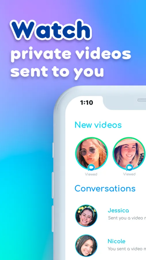 Watch private videos sent only to you and decide freely who to talk to.