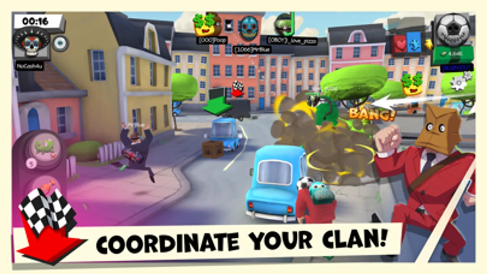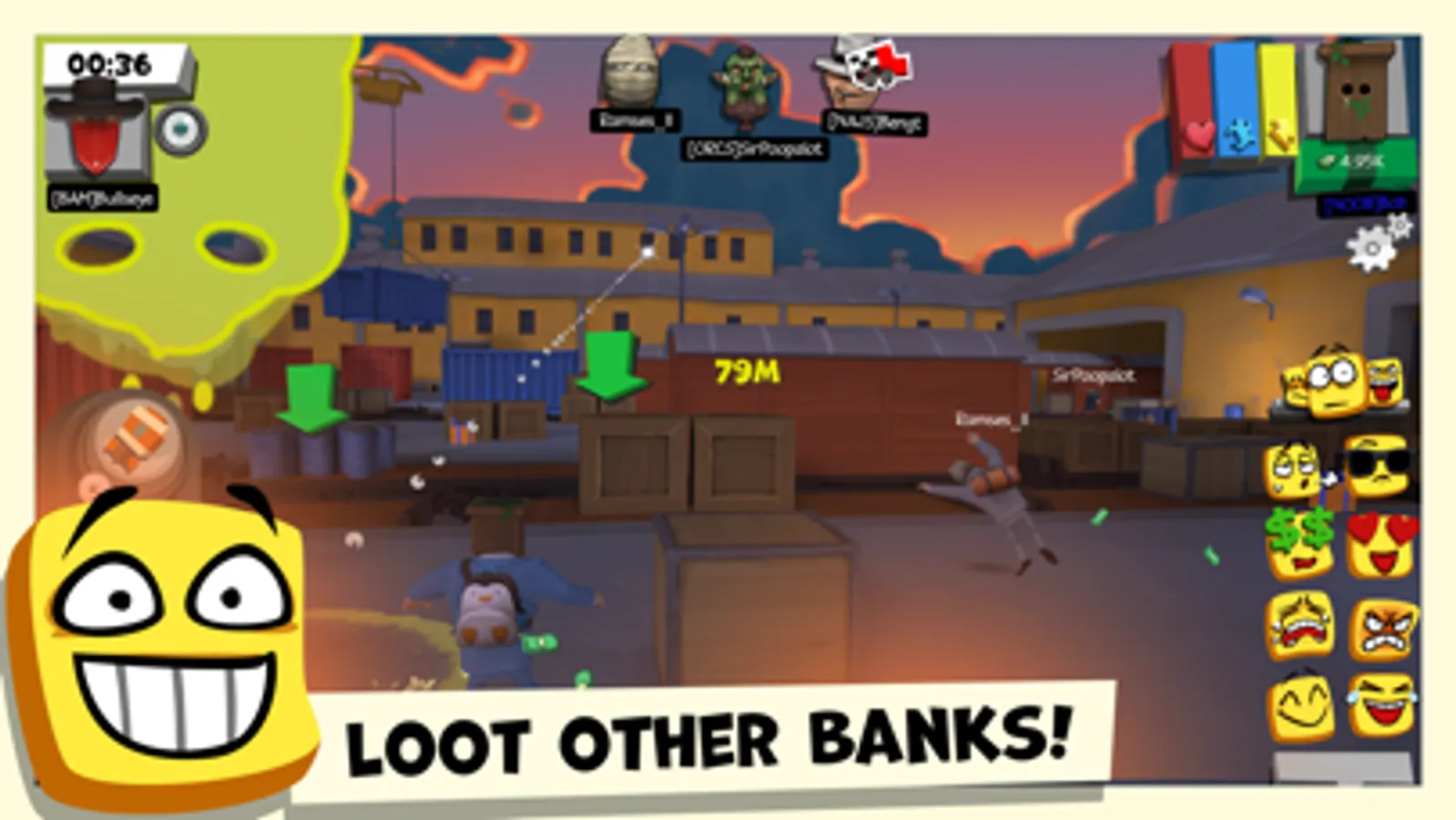 • Protect your vault in real-time from rival bankers! Take them out before they get to the getaway van!