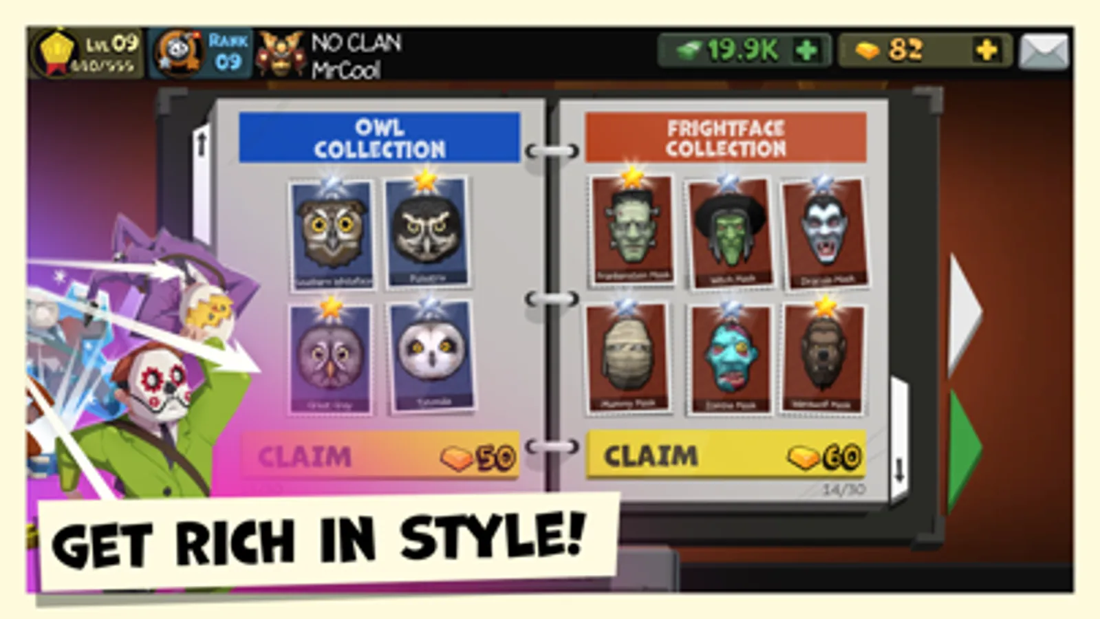 • Collect over 100 different masks! Highlights include Samurai, Pumpkin head and Disco Ball guy.