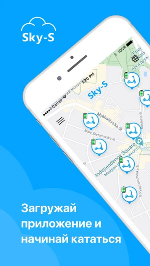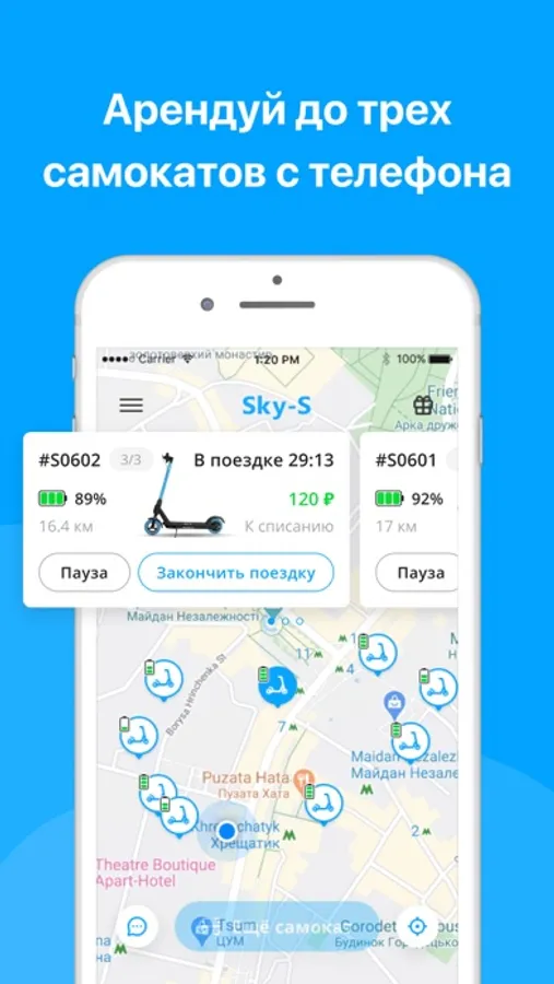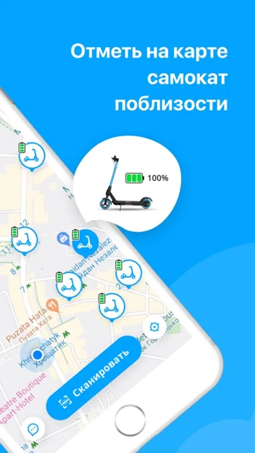 - Открой приложение и найди ближайший Sky-S электросамокат на карте