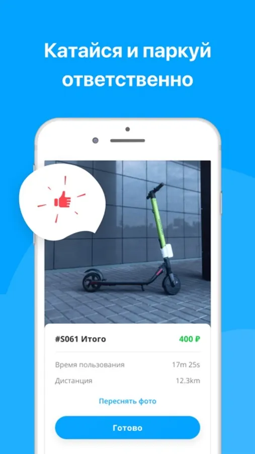 - Заверши поездку припарковав электросамокат