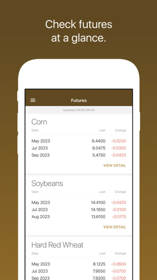 Futures: See Grains, Feed, Livestock, and Ethanol futures listed in order of your preference