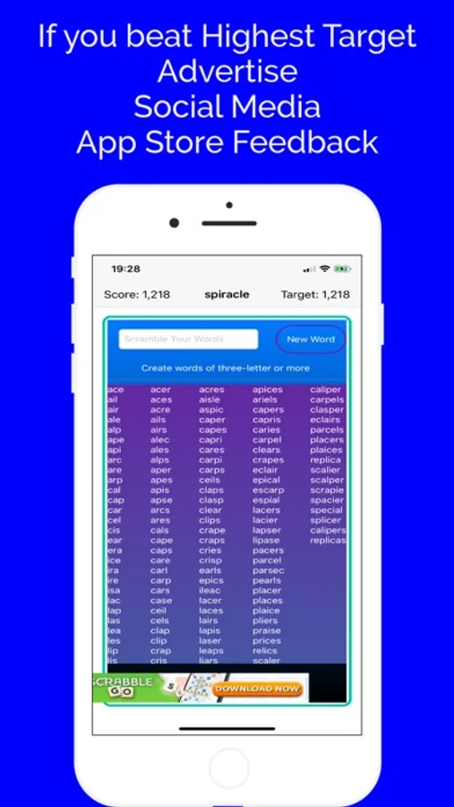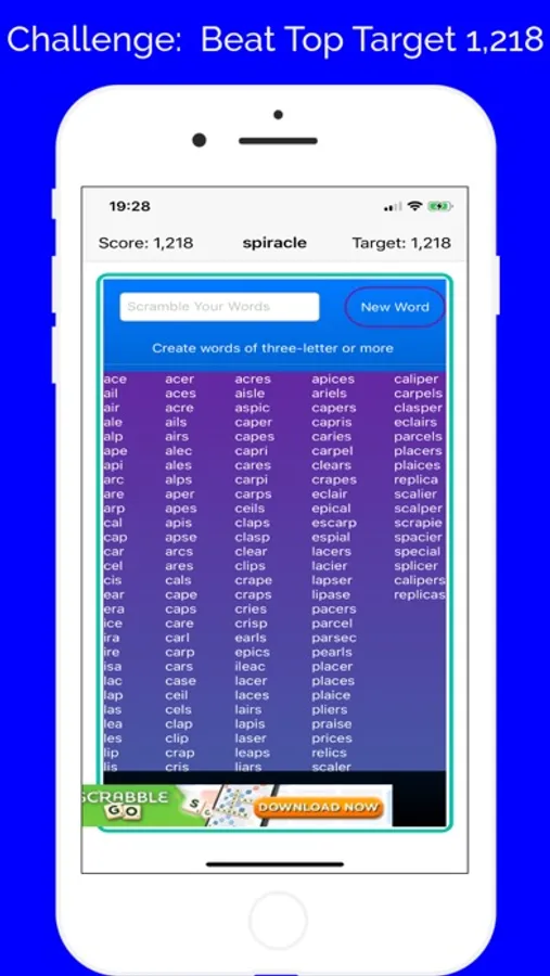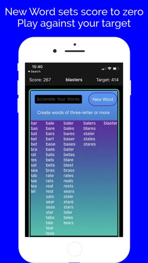 *** The fun is that you set the target by playing. Your highest score becomes your target. Next word to play ... you play against that target.