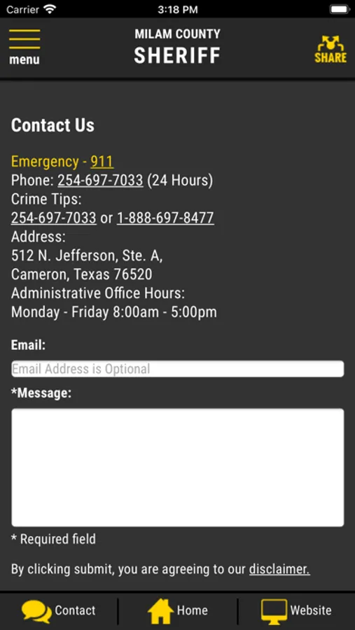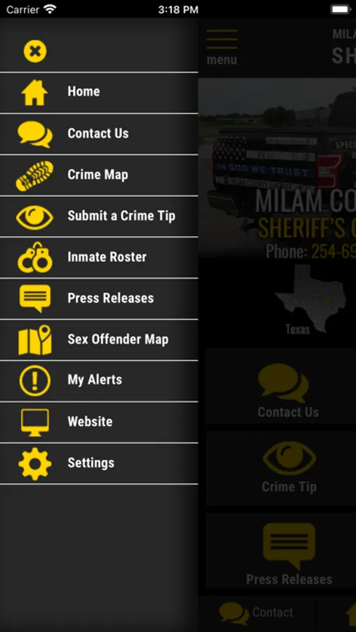 Milam County TX Sheriff Screenshots