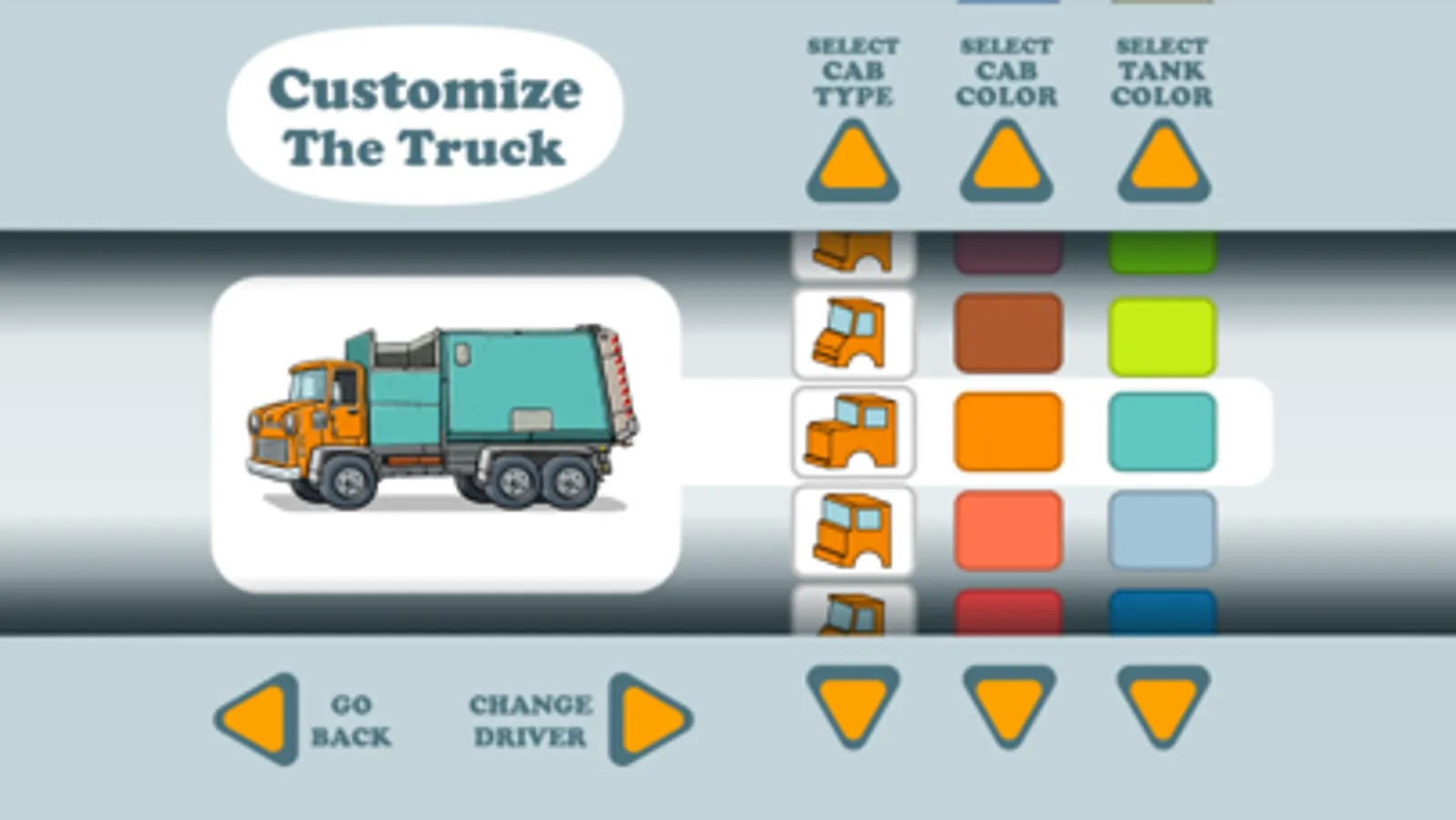 Customize your truck colors and driver.