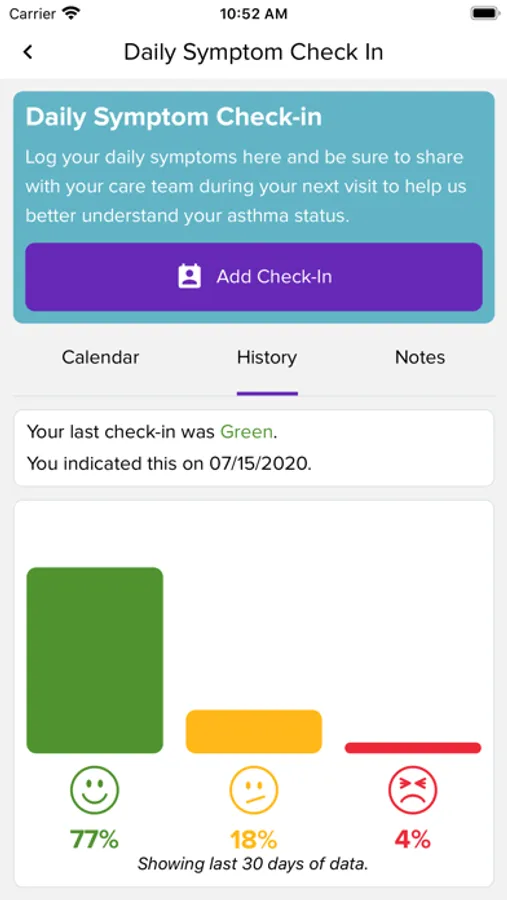 • Encourages users to self-manage their asthma symptoms over time and track improvement