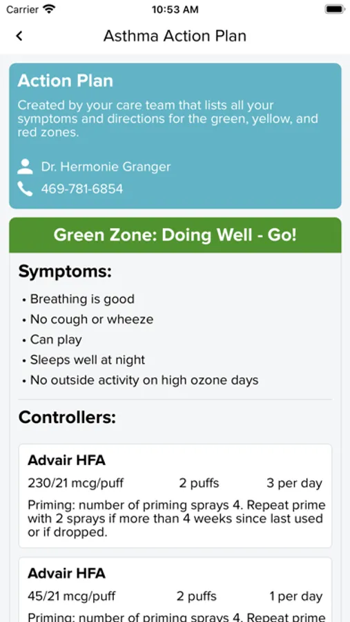 • Allows users to share their Asthma Action Plan and Asthma Control Test (ACT) scores