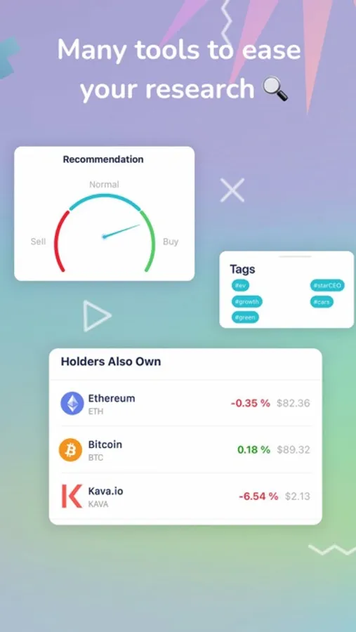 See why an asset is moving, discover new investment ideas by hashtags and collections, check what others are holding, keep watchlists, get price alerts and breaking news, track your performance with easy to understand metrics and tools to stay up to date on your trade game.