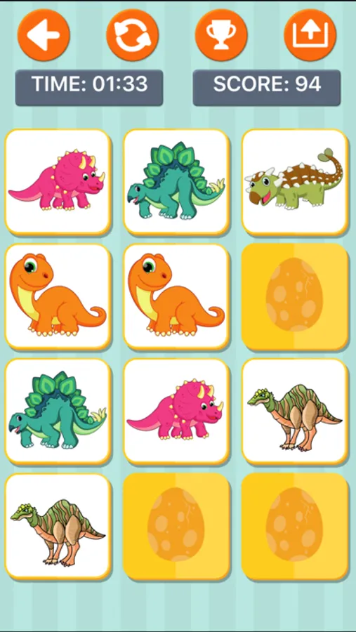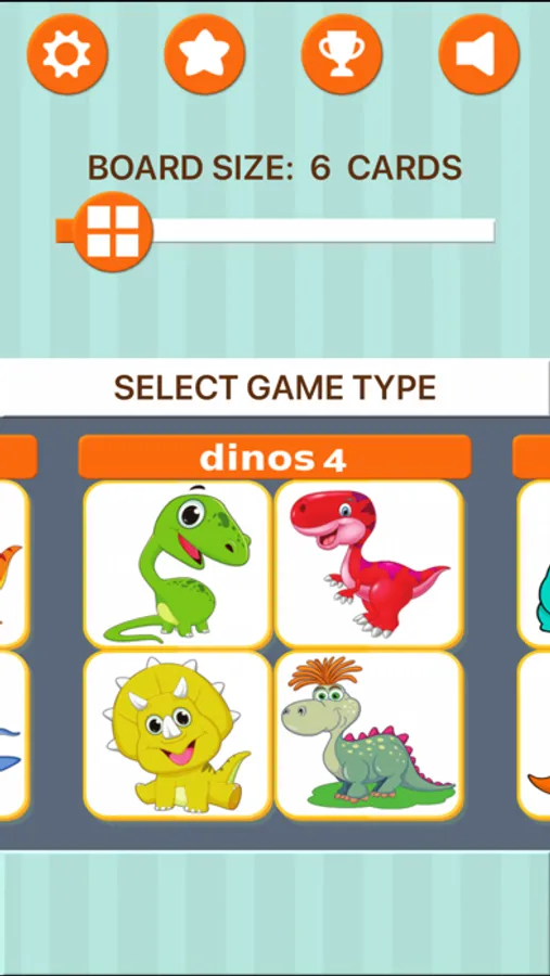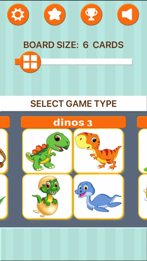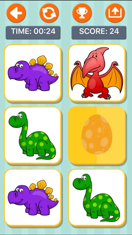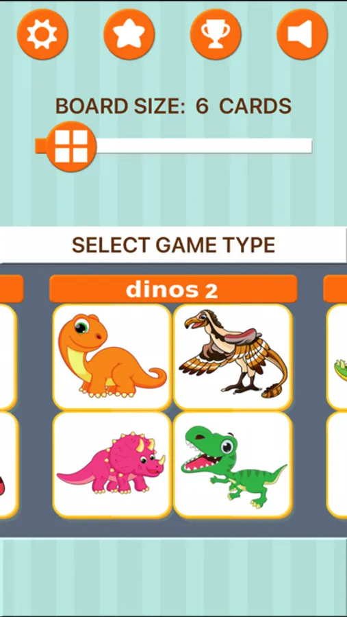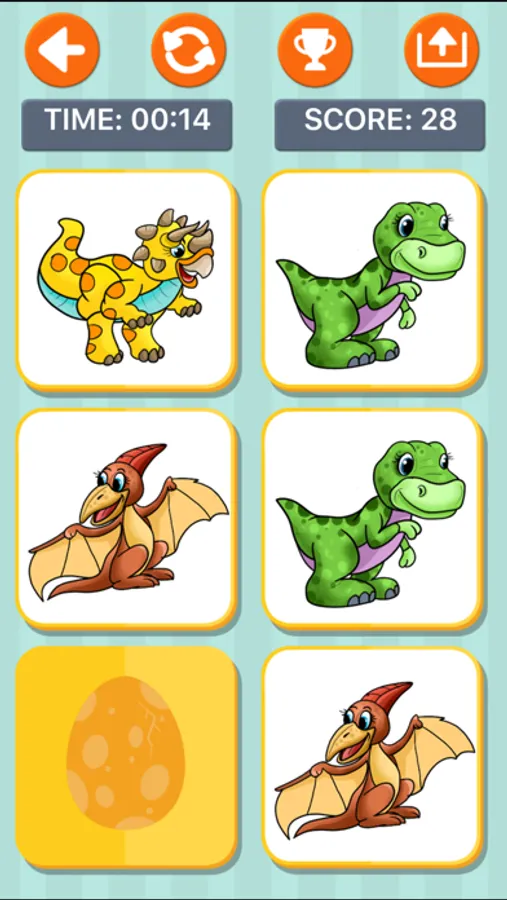 Meet our new Dinosaurs Memory Game for kids for all ages! Dinomania is classical brain training game with tons of fun dinos of many different arts! Clear and simple user interface will help kids to improve their memory, better develop their concentration ability and cognitive skills. The difficulty of the game can be flexible adjusted from 6 to 30 board cards according to the kids age and personal wishes.