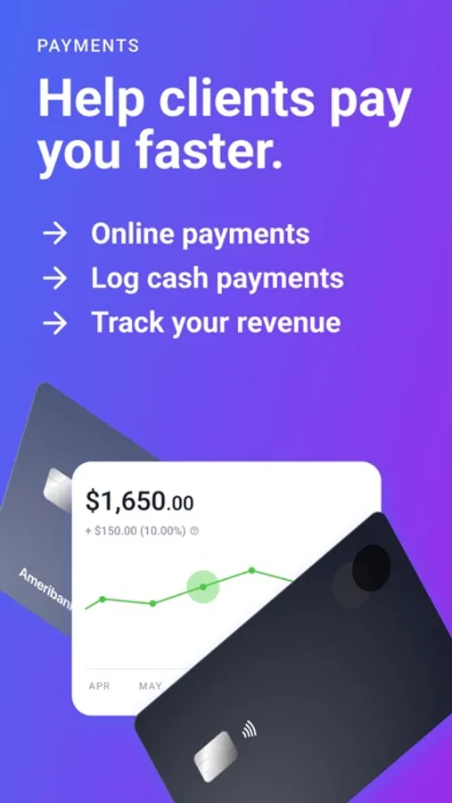 - Payments: You’ll also have the option to connect your bank account so clients can pay you directly with a credit card (we charge the usual credit card processing fees). No more chasing down checks and waiting in line at the bank. Instead, the money goes straight into your bank account.