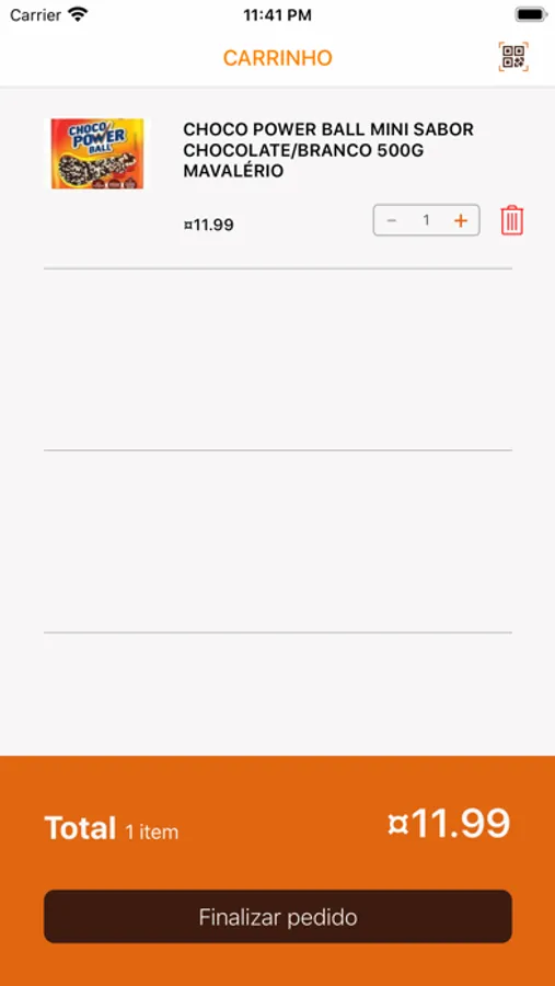 Com apenas um clique, você começa suas compras. Basta mirar no código de barra ou QR Code do produto e selecionar quantos itens você quer.