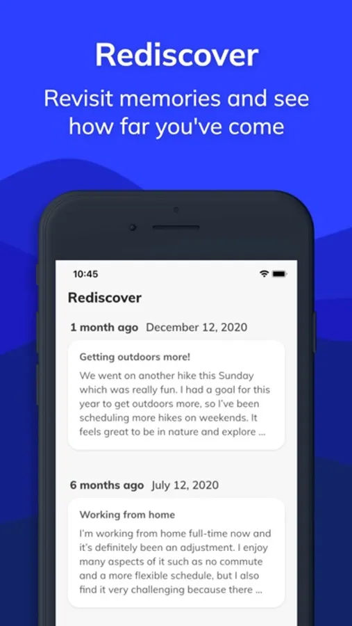 - Revisit your past entries with Rediscover to relive memories and see how far you've come.