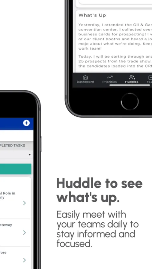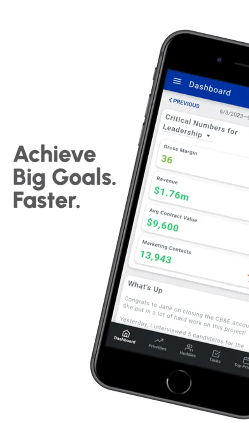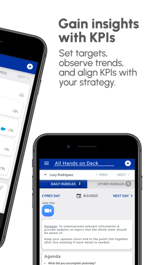 huddles. Your personalized and company dashboards provide quick on-the-go metrics.