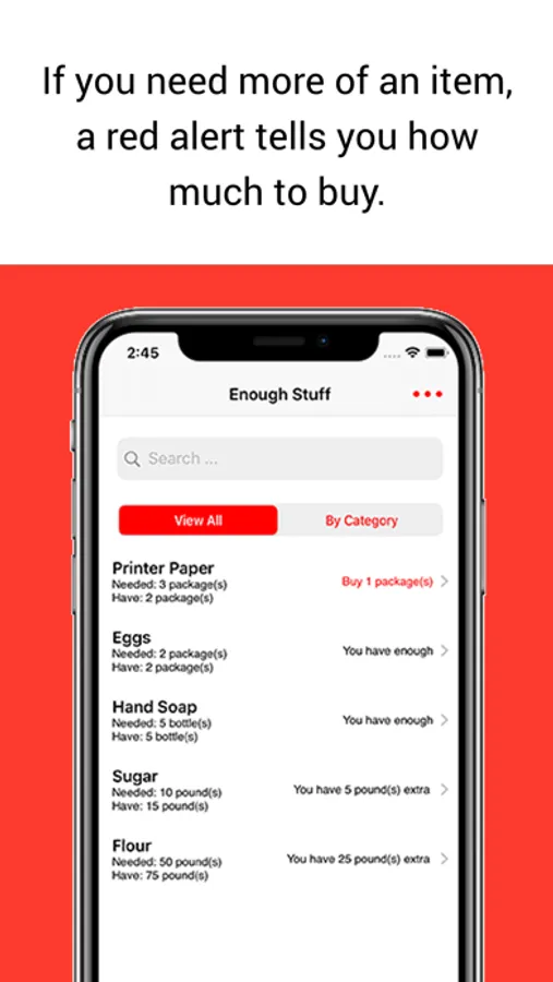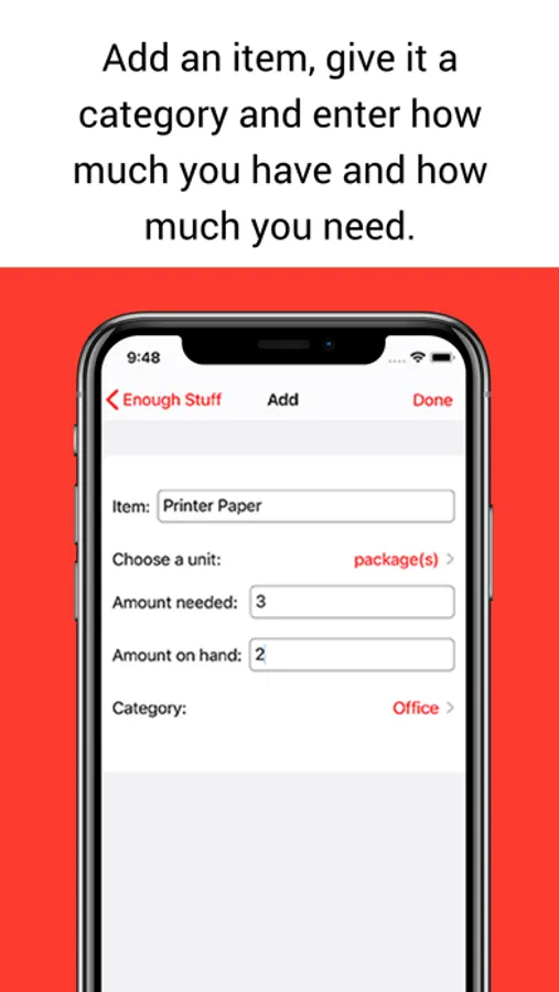 Enough Stuff is the easy inventory app that helps you keep track of what you need to buy and how much you need of it.
